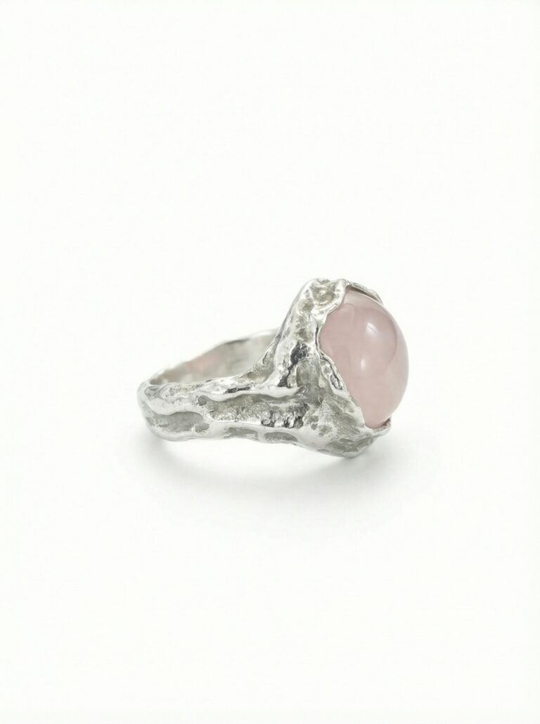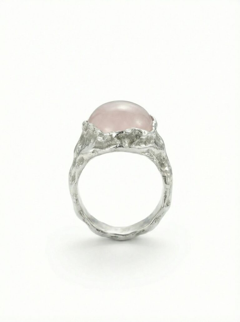 Handcrafted from solid 925 sterling silver and set with natural rose quartz.