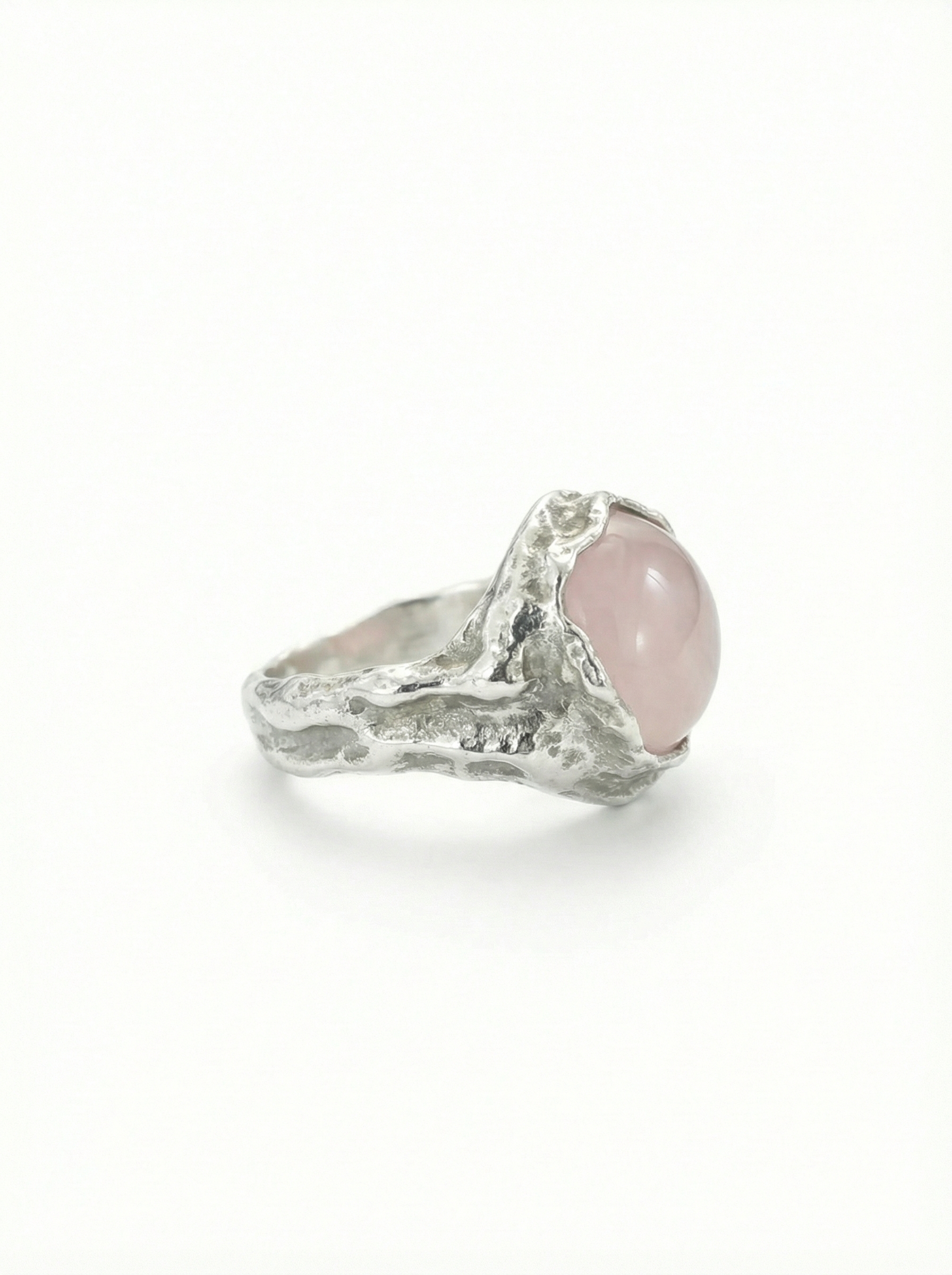 Handcrafted from solid 925 sterling silver and set with natural rose quartz.